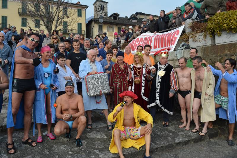 Tanta gente per il “cimento invernale” sabato mattina. Numerosi gli appassionati, e record della manifestazione con trentaquattro iscritti. Presenti i sovrani del carnevale, le forze dell’ordine, i sub e la croce rossa. Il sindaco Albertella ha presenziato all’evento con la giunta comunale. Tra i partecipanti, provenienti da Italia e Svizzere il simpatico Emilio Levati, cannobiese d’adozione che si è simpaticamente presentato con “la palla al piede” realizzata in polistirolo per fare il tuffo. Presente anche Monica Olmi, olimpionica italiana a Los Angeles nel 1984. Anche don Massimiliano Maragno ha partecipato al “tuffo” gettandosi nelle acque del lago Maggiore a sei gradi. Presenti come sempre gli amici del tuffo provenienti dalla Liguria. L’evento ha visto l’associazione “I pedu’” preparare vin brule e snack offerti a tutti oltre alla presentazione di “Bego” Odelli. Il nuotatore piu’ esperto è stato Ilario Fidanza, classe 1943 di Brissago mentre il piu’ giovane è stato il cannobiese Davide Ruschetta nato nel dicembre 2003. Ventisette maschi e sette donne hanno preso parte al “cimento”.