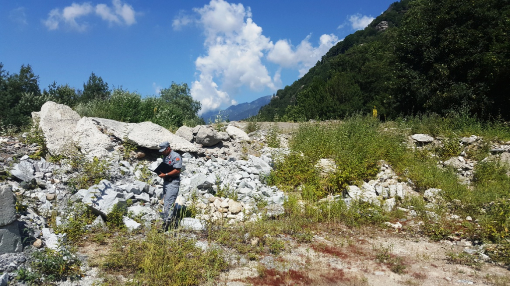 Il quantitativo di materiale scaricato è particolarmente ingente poiché la galleria scavata ha una lunghezza superiore ai 2 km. L’ammontare complessivo, stimato sul numero di trasporti effettuati, è pari a circa 13mila tonnellate. L’area dove è stato individuato il materiale, pari a circa 3 mila metri quadrati, risulta inoltre incompatibile con la destinazione d’uso prevista dalle norme di Piano Regolatore del Comune di Malesco. La zona è infatti classificata ad alto rischio idrogeologico per la vicinanza al Torrente Melezzo con conseguente divieto di accumulo di materiale inerte o fangoso. I terreni in aggiunta sono sottoposti a vincolo paesaggistico.