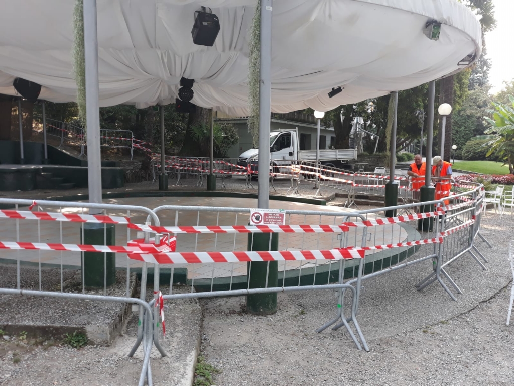 Dopo un sopralluogo dei Vigili del fuoco il gazebo del parco di Villa Giulia a Pallanza è stato ritenuto pericolante e perciò transennato per impedirne l’accesso all’area sottostante.