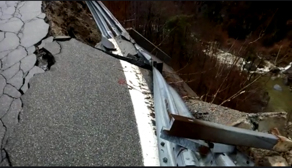 Chiusa la strada della Valle Vigezzo appena dopo il confine di Ponte Ribellasca, zona Camedo. Qui ha ceduto la sede stradale, problemi per i frontalieri.