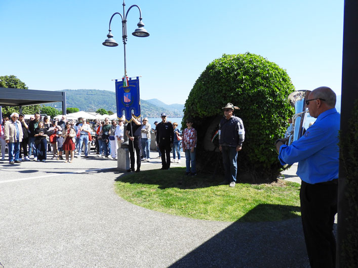 Festa della Liberazione sabato 25 aprile a Baveno. Dopo la celebrazione della messa nella chiesa parrocchiale si è formato un corteo che si è fermato dapprima al monumento ai Caduti, poi al monumento dedicato ai 17 Martiri e infine al monumento che ricorda la Shoah, tutti e tre ubicati sul lungo lago. Accompagnati dalla Banda Musicale di Baveno, ai primi due monumenti sono state depositate le corone d’alloro, mentre a quello della Shoah, come da tradizione ebraica, i presenti hanno depositato uno dei sassi che sono stati distribuiti dai giovani del Consiglio comunale dei ragazzi. Poi davanti al municipio è stata la volta degli interventi. Ha detto il sindaco, Alessandro Monti: «Vorrei che fossimo chiari sin da subito, non siamo qui per un’incombenza burocratica o per un atto dovuto. Siamo qui per compiere un atto di ribellione contro la dimenticanza. Celebrare il 25 Aprile significa, oggi più che mai, decidere da che parte stare. Significa dichiarare che tra la libertà e la tirannia, tra la dignità e la sopraffazione, tra l’eguaglianza e il privilegio, noi abbiamo scelto. Abbiamo scelto allora, con il sangue dei nostri padri, e scegliamo oggi, con la nostra coscienza».